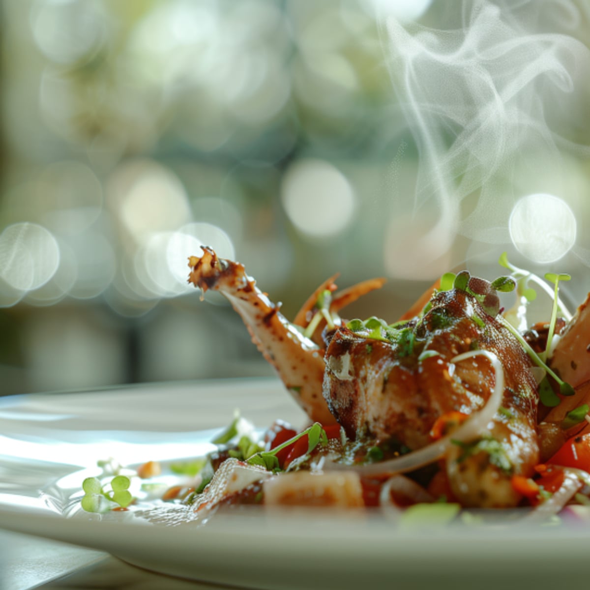 This Spanish-inspired preparation showcases frog legs in the traditional paella format, creating a dish that demonstrates the ingredient's versatility in international cuisines. The technique honors Spanish culinary traditions while incorporating this uniquely American protein into a classic rice dish.